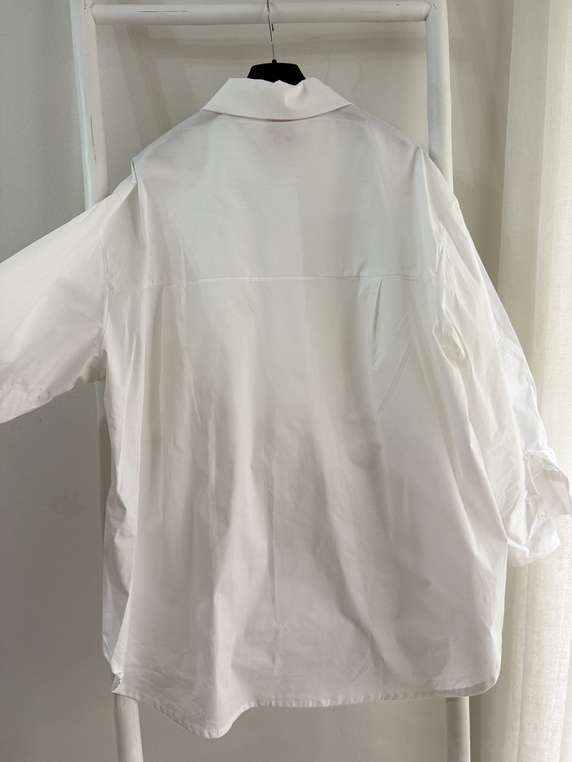 Λευκό βαμβακερό πουκάμισο εξαιρετικής ποιότητας, με φαρδιά και άνετη γραμμή που καλύπτει περίμετρο στήθους έως 140 εκ. Πλένεται εύκολα και παραμένει σταθερό και όμορφο στη χρήση.